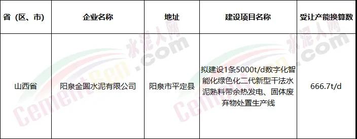 据水泥人网了解,前不久山西省工信厅发布了《山西汾西矿业(集团)有限责任公司水泥厂产能出让公示》称将退出位于晋中市介休市龙凤镇龙凤村的山西汾西矿业(集团)有限责任公司水泥厂的1000t/d熟料生产线,用于山西省阳泉金圆水泥有限公司建设1条5000t/d数字化智能化绿色化二代新型干法水泥熟料带余热发电、固体废弃物处置生产线。公示日期截止到今日(5月13日)如公众未提出异议,或将于近日正式发布公告。