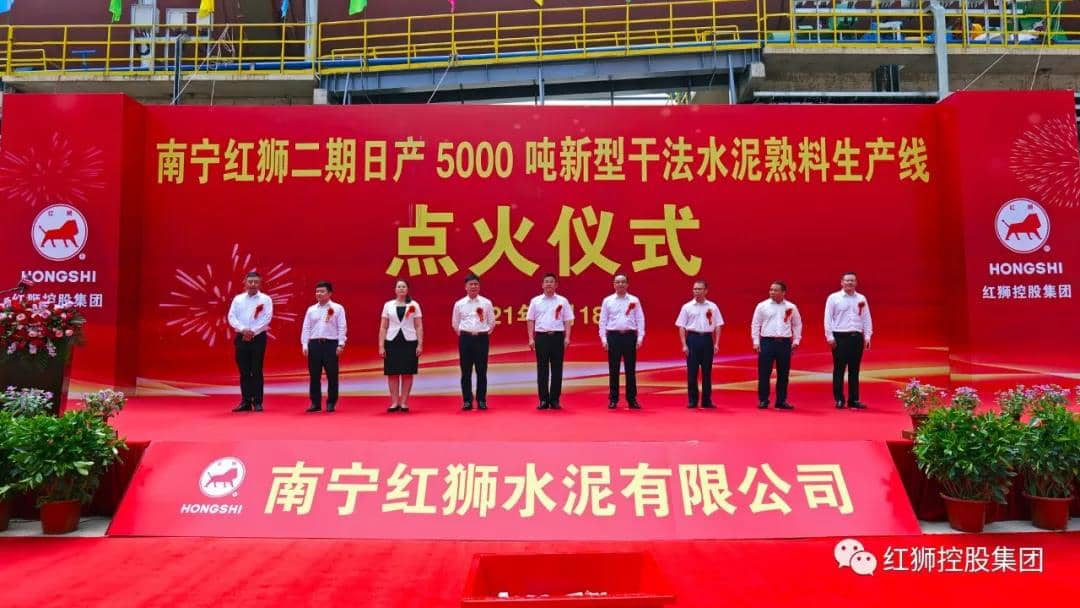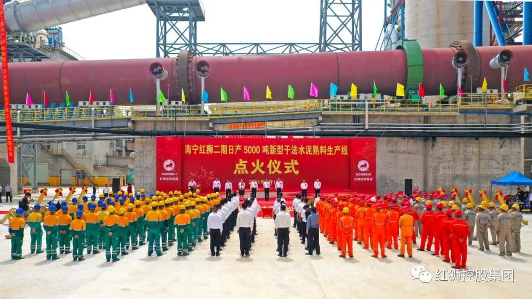 盛夏武鸣,欣欣向荣。5月18日上午10时38分,红狮集团南宁红狮二期日产5000吨新型干法水泥熟料生产线顺利点火投产,项目总投资约15亿元、年产高标号水泥200万吨。
