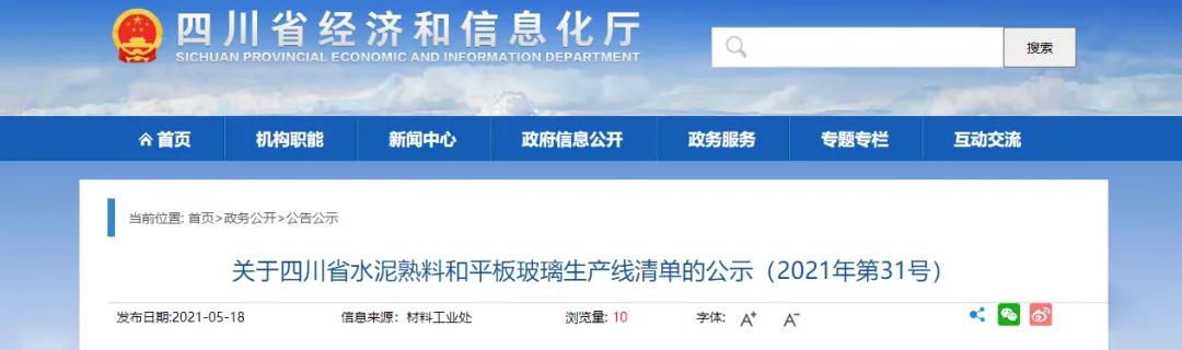 根据工业和信息化部办公厅和国家发展改革委办公厅《关于严肃产能置换水泥平板玻璃行业新增产能的通知》(工信厅联原〔2018〕57号)及工业和信息化部《关于更新并公开水泥平板玻璃生产线清单的函》(工原函〔2019〕527号)有关要求,我厅对全省水泥熟料和平板玻璃生产线上报情况进行了审核汇总(截止到2020年12月31日),现将更新后的全省水泥熟料和平板玻璃生产线清单以公示,公示期自2021年5月14日至5月20日(5个工作日)。公示期内如有异议,请向四川省经济和信息化厅材料工业处反映。