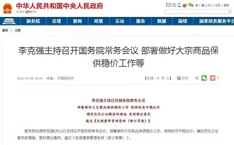 5月19日召开的国常会提出,部署做好大宗商品保供稳价工作,保持经济平稳运行。