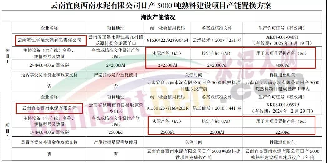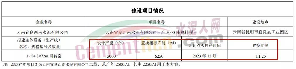 日前,云南省工业和信息化厅发布《云南宜良西南水泥有限公司日产5000吨熟料建设项目产能置换方案公示》。