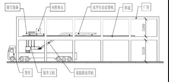 作为土木建筑、水利、国防等工程的重要原材料,水泥的应用范围非常广泛。袋装水泥的装车系统作为水泥生产运输过程中的重要环节,其成本占水泥厂物流成本的很大比重。当前市面上袋装水泥的包装发运多以传统的半自动化的装车方式为主,其装车终端要求工人站在货车车箱里进行人工装车,存在易产生粉尘、污染环境和危害工人身体健康、劳动力生产成本高、装车效率低等弊端。