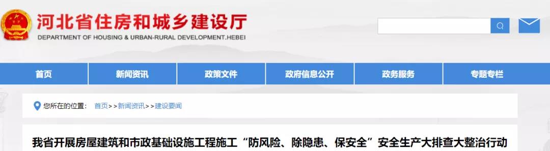 近日,河北省住房和城乡建设厅印发通知,5月底前在全省开展房屋建筑和市政基础设施工程施工“防风险、除隐患、保安全”安全生产大排查大整治行动。具体通知如下:
