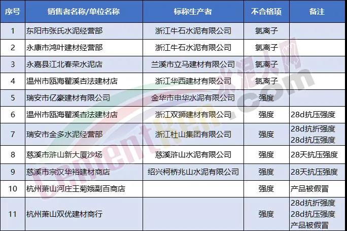此前,浙江省市场监督管理局发布《关于2020年流通领域实体店产品质量监督抽查情况的通报》中显示不合格的13个批次水泥产品中包括11个批次砌筑水泥M32.5产品,不合格项目涉及强度和氯离子含量。