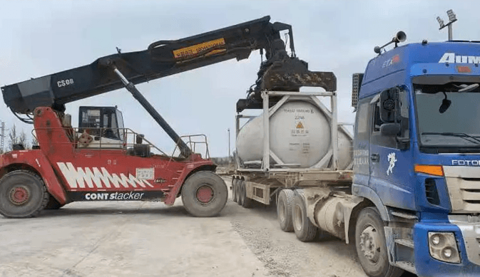 H30801次列车编组49辆N70型平车,装载98个22N8型罐式集装箱,在新朔铁路二道河站组织装车,经大准线-丰联线-京包线运输,途径呼铁局、太原局、北京局,终到丰台西站。