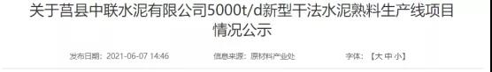 莒县中联水泥有限公司通过退出德州中联大坝水泥有限公司1500t/d、日照中联水泥有限公司4750t/d新建一条5000t/d熟料生产线,置换比例1.25:1。