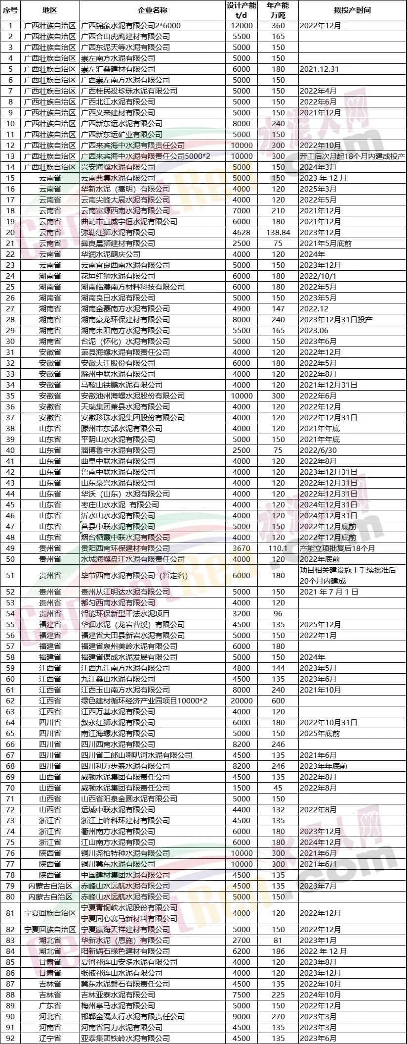 水泥人网注意到,上述四个项目中都存在拆分项目。也就是将一条或多条熟料生产线拆分为两个或多个产能分别置换到不同的新建项目中。