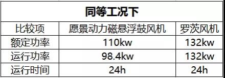 今年3月份,山东省烟台市某水泥厂因生产规模扩大、设备升级改造,于愿景动力购买了一台磁悬浮鼓风机,在风机运行了60天后,愿景动力对该水泥厂进行了第二次客户回访与设备的维护工作。 发现在相同工况与运行时间下,愿景动力磁悬浮鼓风机比传统的罗茨风机要节能约32%左右。