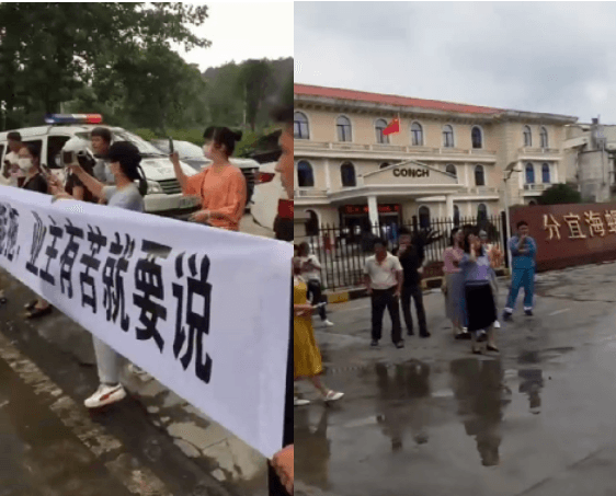 另一则视频中传出物流卡车司机声音说,“海螺水泥出了质量问题,这些人在海螺门口把大门都堵住了,车子都出不来了!”