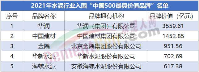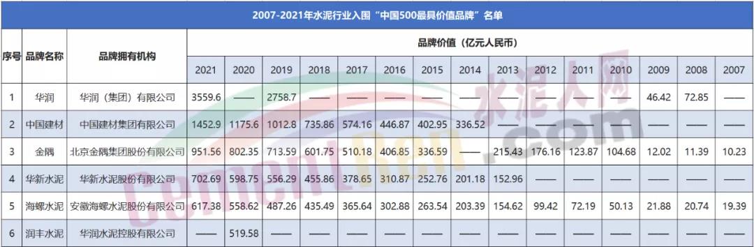 回顾历年发布的《中国500最具价值品牌》名单,可以看出,中建材连续8年占据水泥行业品牌价值高位,海螺水泥则是水泥行业唯一一家自品牌活动开展15年以来,每年都上榜名单的水泥企业。