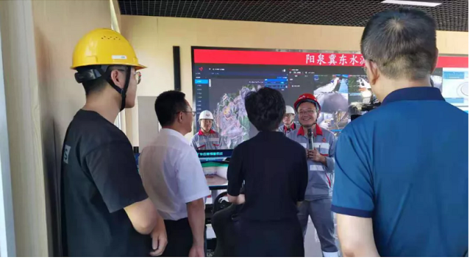 6月16日,在阳泉冀东水泥举办的2021年山西省建材工业协会水泥窑夏季错峰生产启动仪式中,为前来参观的山西省工信厅演示了智慧矿山生产作业情况,就项目对安全高效生产的影响表示高度关注。