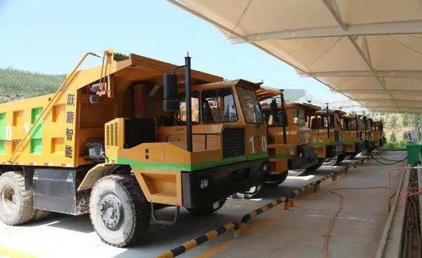 河南能源焦煤公司千业水泥5G无人驾驶运输车正在充电站进行充电摄影/刘建军
