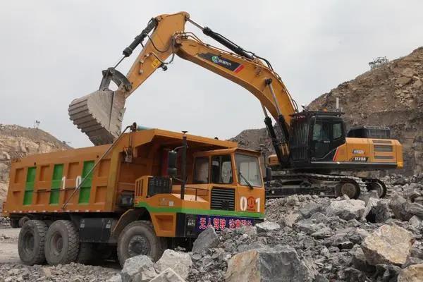 河南能源焦煤公司千业水泥5G无人驾驶挖掘机正在露天矿区现场作业摄影/刘建军