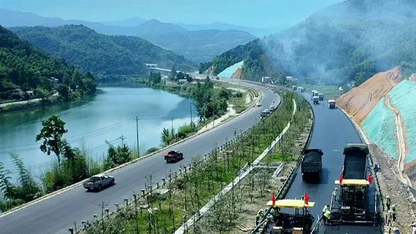 通达石台县的池祁高速池州至石台段已经开铺沥青面层。金海礁摄
