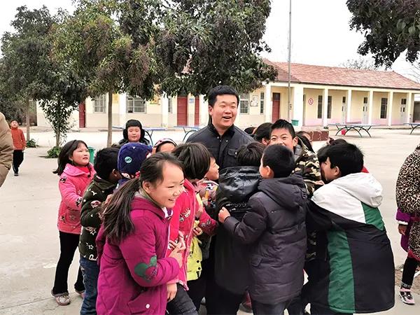 华安证券公司支教员工受到卢天庙小学学生的热烈欢迎。华安证券供图