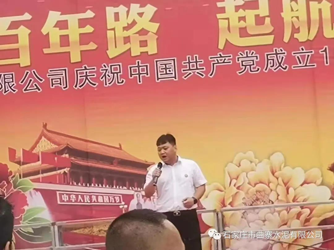 受石家庄市曲寨水泥有限公司总经理高建坤同志委托,曲寨水泥常务副总经理樊少杰在开场致辞中代表曲寨水泥有限公司全体员工,祝福祖国母亲永远繁荣昌盛、山河永固,祝愿党的领导永远辉煌,党的基业万年长青。
