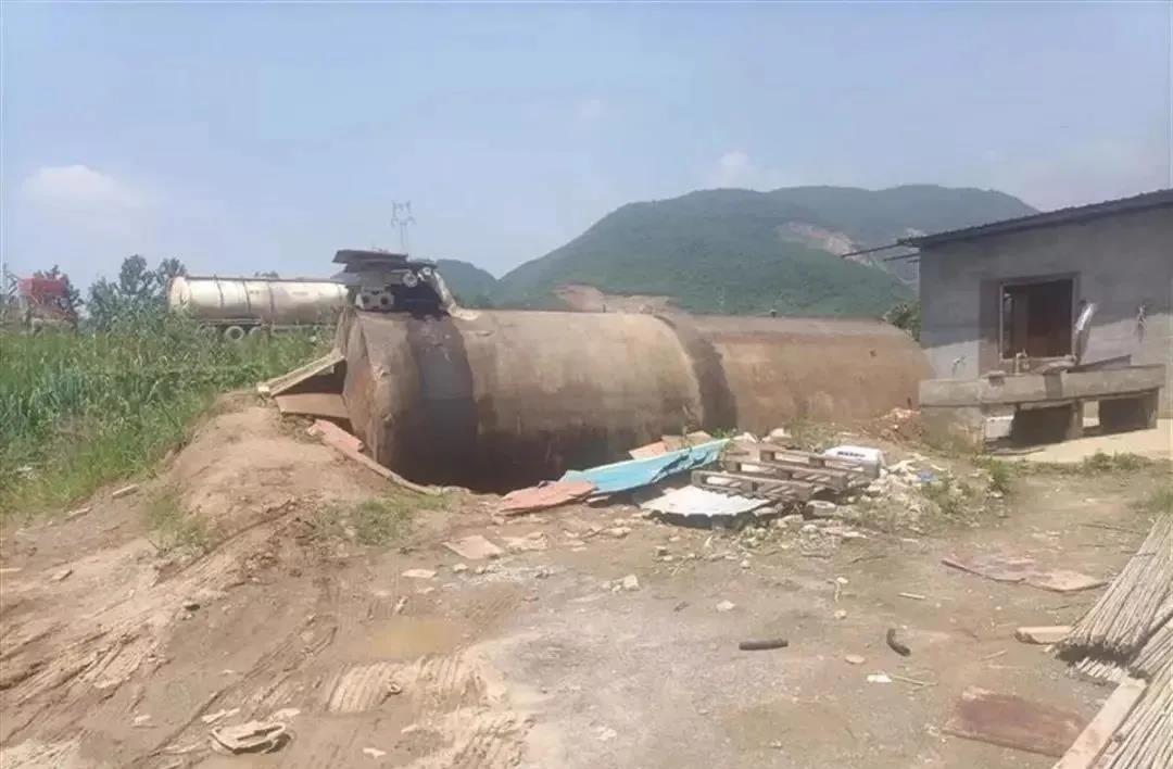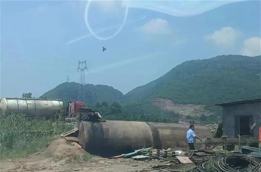 储油罐旁边,还放着5个疑似氧焊的氧气瓶。储油罐距离华新水泥生产线,距离大约仅100多米远。