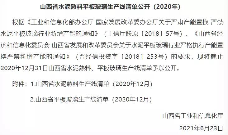 日前,山西省工信厅将截止至2020年12月31日的水泥熟料生产线清单予以公开。
