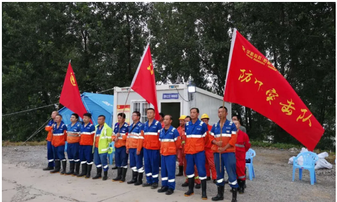 华新阳新骨料公司党员防汛救灾突击队战斗在防汛抢险一线