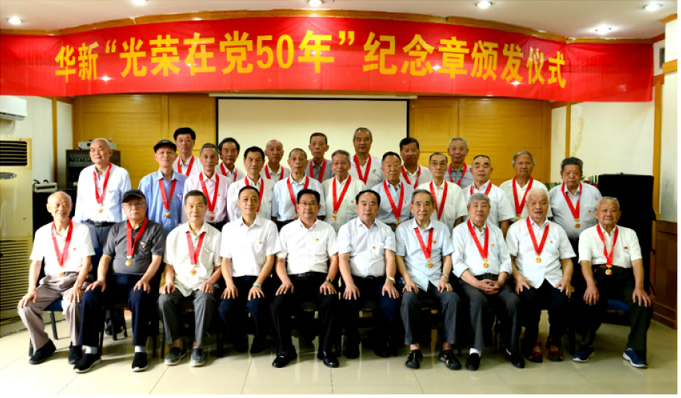 6月21日,华新公司党委举行“光荣在党50年”纪念章颁发仪式