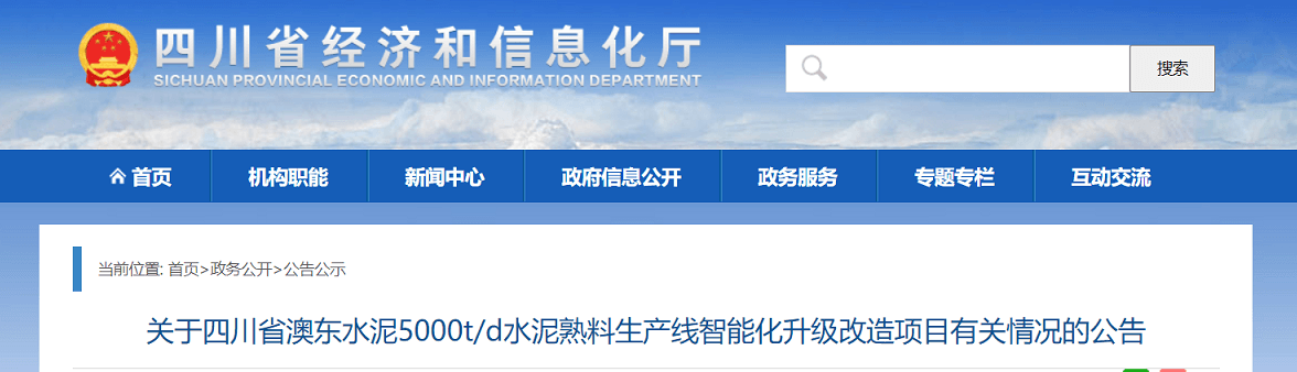 2021.6.29日,四川省工信厅公布了澳东水泥5000t/d水泥熟料生产线智能化升级改造项目有关情况,如下: