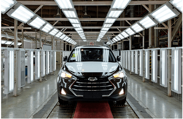 1990年至今,江汽集团累计出口各类车型超70万辆。图为江淮乘用车总装生产线。江汽集团供图