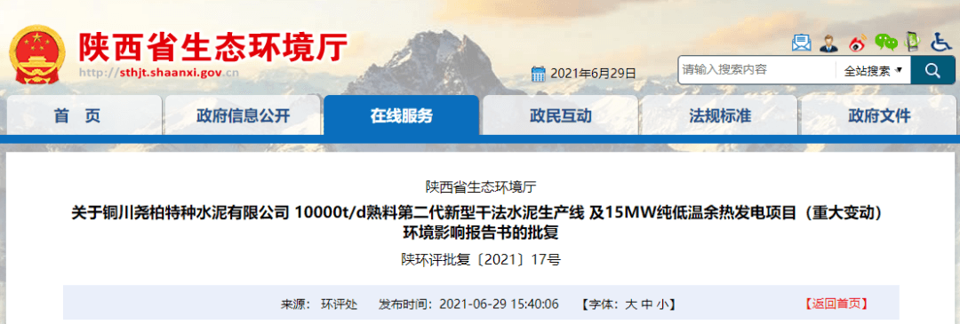 日前陕西省生态环境厅发布《关于铜川尧柏特种水泥有限公司10000t/d熟料第二代新型干法水泥生产线及15MW纯低温余热发电项目(重大变动)环境影响报告书的批复》称,铜川尧柏特种水泥有限公司《关于<铜川尧柏特种水泥有限公司10000t/d熟料第二代新型干法水泥生产线及15MW纯低温余热发电项目(重大变动)(利用水泥窑协同处置固废危废)环境影响报告书>审批的请示》(铜尧字〔2021〕9号)收悉。经陕西省生态环境厅环境影响评价审查委员会2021年第3次会议研究,给予批复。