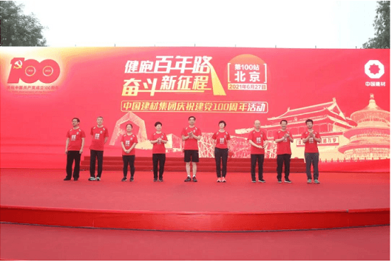6月27日,中国建材集团“健跑百年路奋斗新征程”第100站活动在北京圆满收官。中国建材集团党委书记、董事长周育先,党委副书记孙力实,党委常委、总会计师詹艳景,党委常委、副总经理常张利,中国工程院院士、集团总工程师彭寿,中国建材总院党委书记、董事长王益民,中国建材杂志社社长胡浩,中国建材报副总编辑李予阳及中央企业党史学习教育第六指导组领导出席活动。来自中国建材股份、中国建材总院、凯盛科技、资产公司、地勘中心、中材节能、智慧工业等18家企业的400余名党员职工参加了活动。