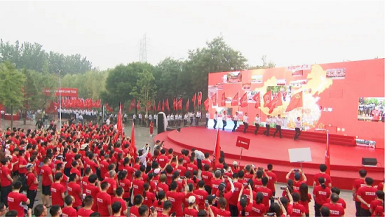 活动现场举行了“健跑百年路奋斗新征程”100站旗手会师仪式。100位旗手高擎着鲜艳的站旗,步伐铿锵、气势昂扬,他们代表着从党史中不断汲取智慧和力量的中国建材人,更加明理、增信、崇德、力行,满怀信心启航新征程!