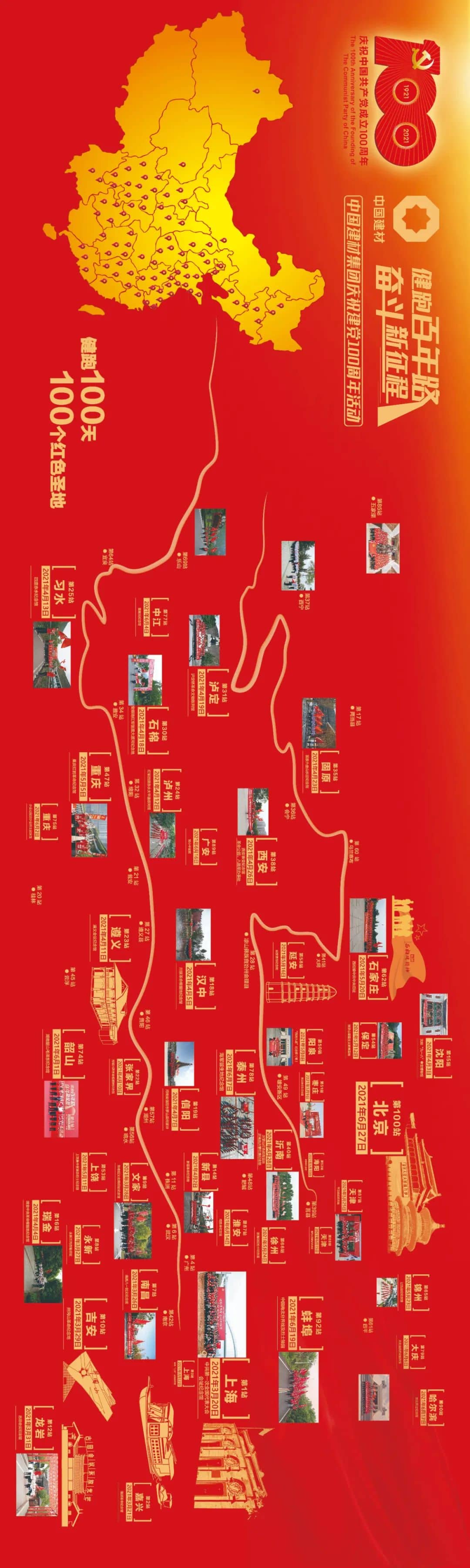 中国建材集团“健跑百年路奋斗新征程”活动,以讲一场专题党课、开展一次现场教学、重温一次入党誓词、赠送一枚新材料印章、开展一场健跑为主要内容,是中国建材集团庆祝建党100周年的重要载体,是集团党史学习教育的重要内容,是集团党建经营相融合的生动实践。自3月20日开展以来,覆盖353家企业11070名党员职工,极大地激发了集团广大党员干部爱党爱国热情,营造了共谋发展、和谐进取的良好氛围,在新华网、新浪、网易、搜狐等网络媒体和各地方媒体掀起了宣传热潮,营造了共庆建党百年的浓厚氛围。