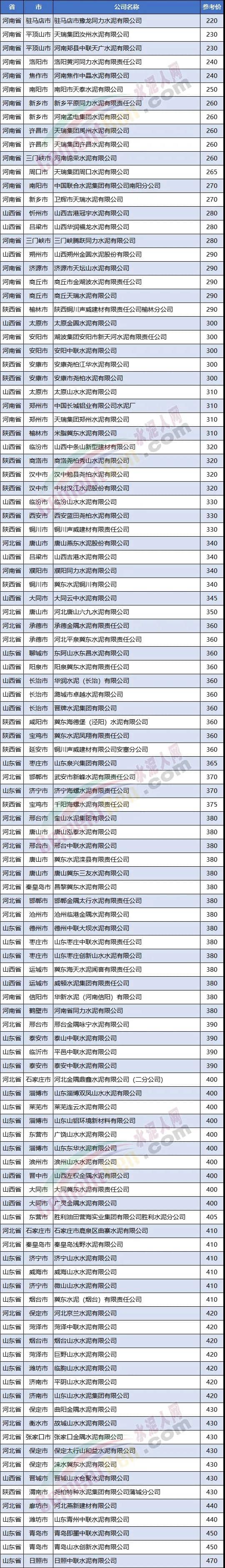 备注:来源水泥人网信息中心人工采集,仅供参考,如与实际成交不符请以实际成交为主。
