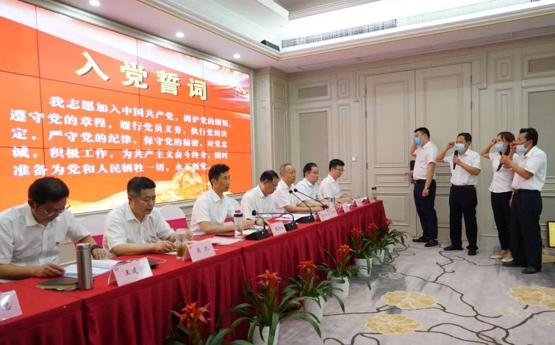 按照党章规定,经新洲区和阳新县委非公有制经济工作委员会批准,蔡立、杨洁等四名同志按期转为中国共产党正式党员;张博、汪德文等五名同志被接收为中国共产党预备党员。新接收的预备党员在党旗下进行了庄严宣誓。