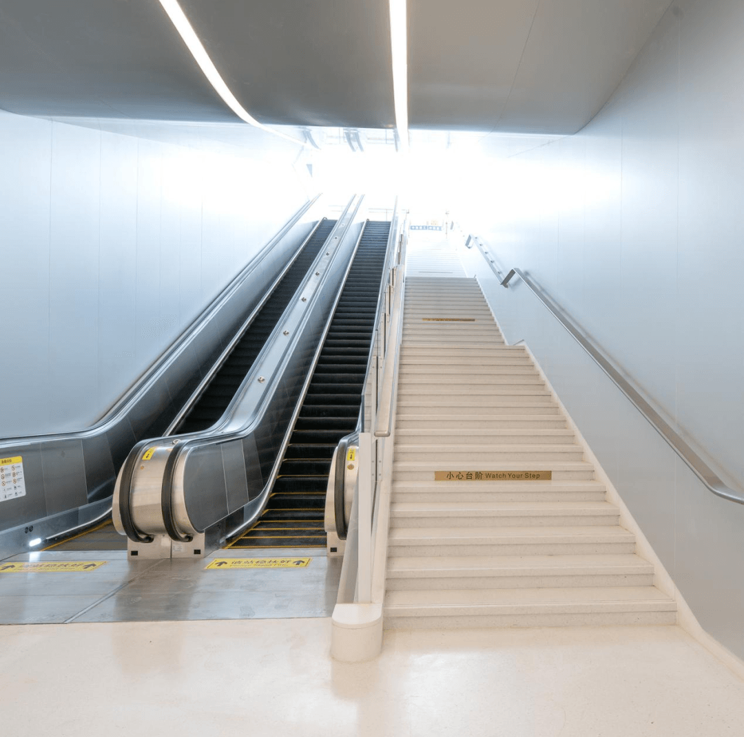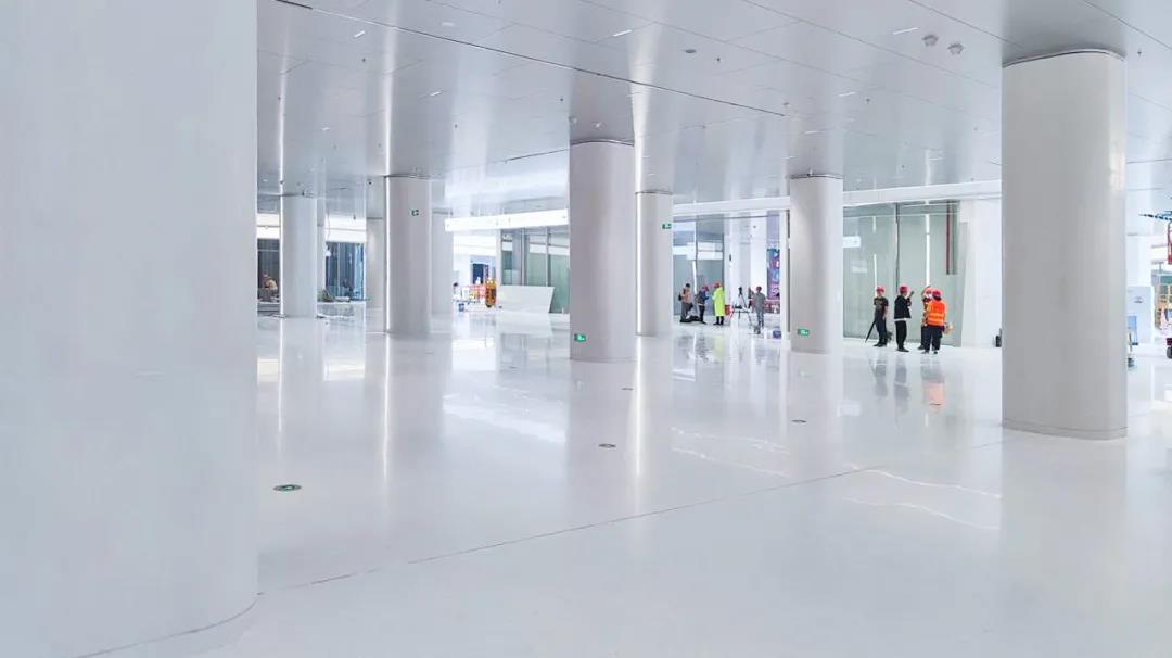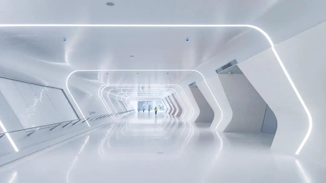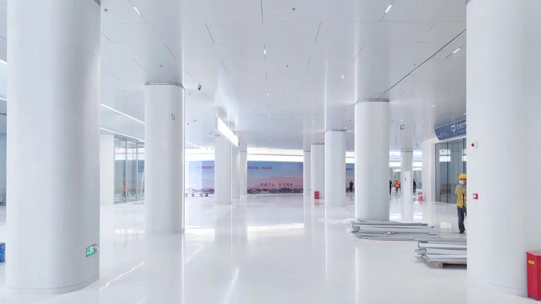 进站通道风格简洁,地面采用到华润水泥人造石,整体设计极具未来感。