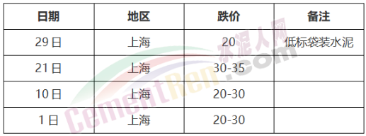 上海市水泥价格连降三轮,累计跌价达70-95元/吨,个别企业跌价达100元/吨以上,其中低标号水泥下跌90-115元/吨。