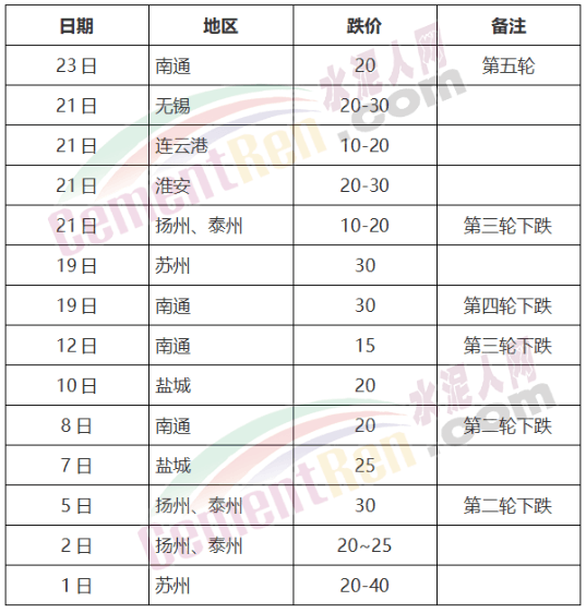 浙江省宁波、台州、温州、金华、丽水、衢州两轮累计下跌80元/吨,市场最高价跌至570元/吨,与五月份最高价660元/吨相比,跌了90元/吨,个别企业以优惠促销、返利方式销售水泥,相比5月份报价低出100元/吨以上。