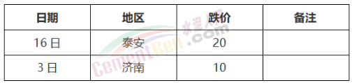 山东泰安地区水泥价格下跌20元/吨,现主流品牌P.O42.5散装水泥出厂价格在435-450元/吨。市场需求疲软,价格偏弱运行。济南地区下跌10元/吨,主流品牌P.O42.5散装市场报价在450-470元/吨。