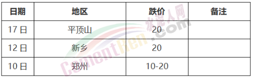 河南省6月份迎来麦收季节,水泥销量整体偏低,周边部分区域水泥价格下跌后,郑州、平顶山、新乡等多个地区水泥价格跟随下调10-20元/吨。