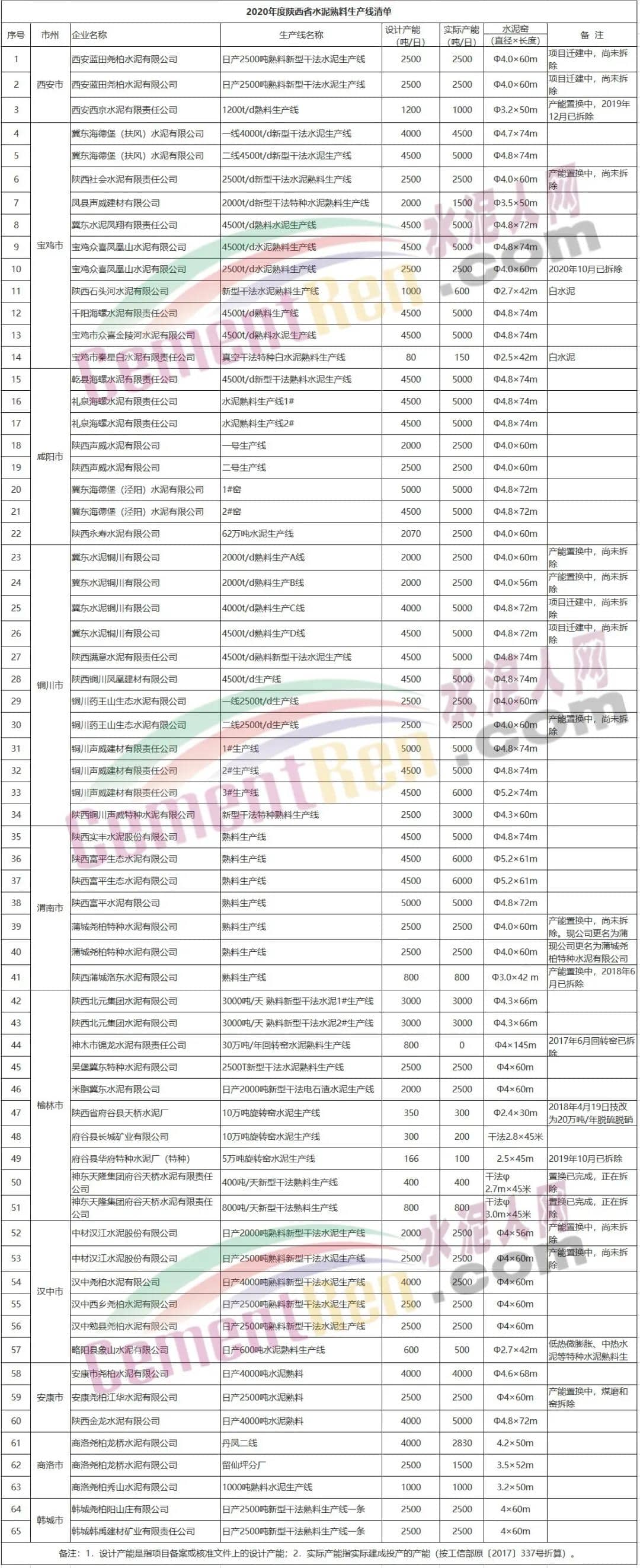 陕西省水泥熟料企业名单