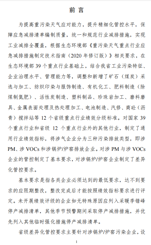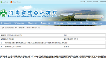 日前,河南省生态环境厅发布《关于做好2021年重点行业绩效分级和重污染天气应急减排清单修订工作的通知》称:为贯彻落实生态环境部《重污染天气重点行业应急减排措施制定技术指南(2020年修订版)》要求,突出精准治污、科学治污、依法治污,积极应对重污染天气,提升环境精细化管理水平,优化营商环境,促进重点行业企业高质量发展,省生态环境厅组织有关科研单位编制了《河南省重污染重点行业应急减排措施制定技术指南(2021年修订版)》和《河南省重污染天气通用行业应急减排措施制定技术指南(2021年修订版)》,并提出相关要求,请一并抓好落实。