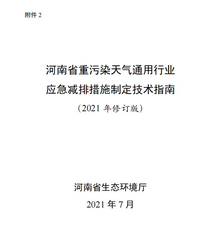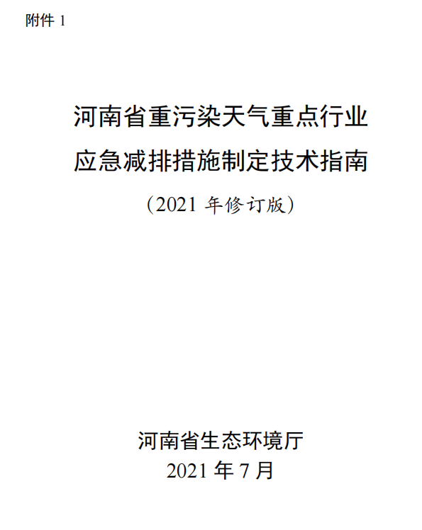 为贯彻落实生态环境部《重污染天气重点行业应急减排措施制定技术指南(2020年修订版)》要求,突出精准治污、科学治污、依法治污,积极应对重污染天气,提升环境精细化管理水平,优化营商环境,促进重点行业企业高质量发展,省生态环境厅组织有关科研单位编制了《河南省重污染重点行业应急减排措施制定技术指南(2021年修订版)》和《河南省重污染天气通用行业应急减排措施制定技术指南(2021年修订版)》,现印发你们,并提出以下要求,请一并抓好落实。