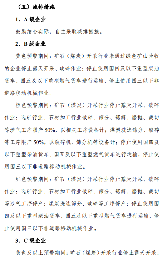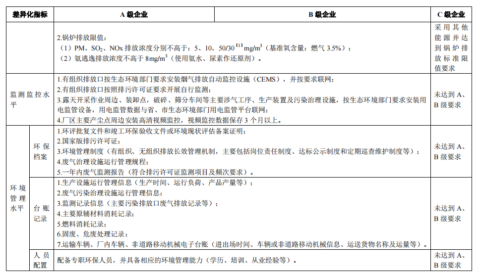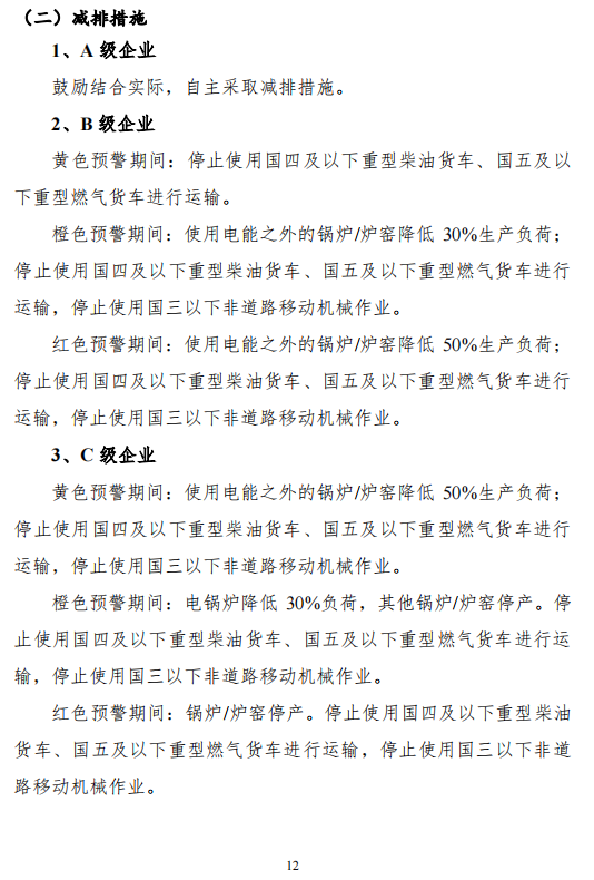 各地要对已开展绩效分级的行业,应急减排措施应严格满足国家《重污染天气重点行业应急减排措施制定技术指南(2020年修订版)》和省级绩效分级有关文件等要求;对于未开展绩效分级的行业,应结合本地应急减排量需求明确应急减排措施;对于电厂、供暖锅炉房、小微涉气企业等,纳入清单,但不强制采取停限产措施,酌情采取交通运输管控措施。扬尘源应按照扬尘污染防治规范标准明确应急减排措施。涉大宗物料运输单位应制定应急运输管控方案并安装门禁系统。清单内工业企业及施工工地等均应制定重污染应急减排措施“公示牌”,并置于入厂显眼位置。在重污染天气预警期间,要严格落实应急减排清单明确的各项应急减排措施,确保可操作、可监测、可核查,切实发挥减排效应,保证绩效分级工作的权威性和严肃性。