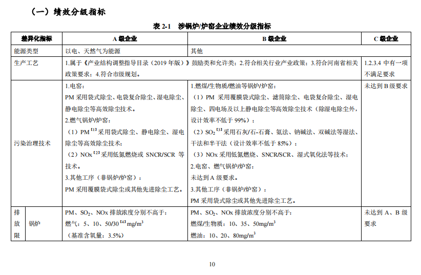 各地要根据《河南省2021年重点行业绩效分级提升行动方案》有关工作要求,对照生态环境部《重污染天气重点行业应急减排措施制定技术指南(2020年修订版)》和河南省《重污染重点行业应急减排措施制定技术指南(2021年修订版)》《重污染天气通用行业应急减排措施制定技术指南(2021年修订版)差异化指标,组织相关行业协会和有关专家分批次对A级企业、B(含B-)级企业、引领性企业进行评审,对C级企业进行评级。未实施绩效分级的行业企业,参照通用行业差异化指标,实施分级管理;同一企业涉及多个行业,将污染物排放量最大的行业作为主行业,涉及到的其他行业也应达到与申报主行业等级一致的指标要求,一项指标未达到相应级别指标规定的,不得评级;一年内受到行政处罚或一年内被降级的,不得评为A级企业、B(含B-)级企业和引领性企业;为企业提供技术服务的第三方机构和参与企业自主验收、清洁生产审核验收的评审专家,不得参与该企业的绩效分级评审工作,确保公平、公正、公开。