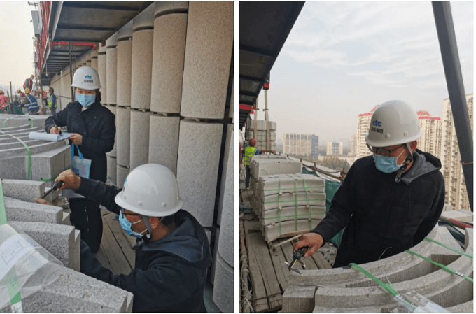 在近500个日日夜夜里,石材中心干部职工团结一心、埋头苦干、攻坚克难,跨越福建省、贵州省、四川省、山东省、湖北省、天津市6个省市自治区,进驻矿山、进驻石材加工厂、进驻施工现场,及时获取一手资料,组织线上线下会议10余次,协调30多个相关单位进行信息沟通,完成石材质控总面积60000平方米,出具抽检报告58批次,监造记录166批次,质控工作贯穿石材应用的全过程,最终迎来了项目的圆满竣工。国检集团不辱使命,用专业的技术服务赢得了各方的高度认可。