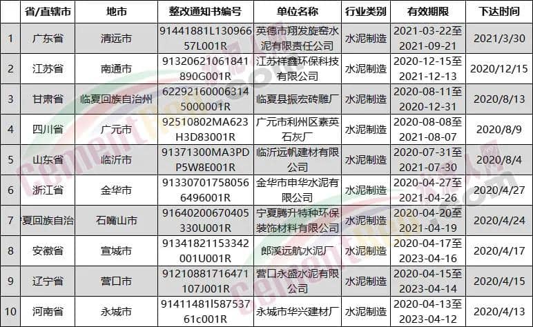 日前,水泥人网从生态环境部全国排污许可证管理信息平台了解到,近两年有多家水泥行业企业被要求限期限整改。