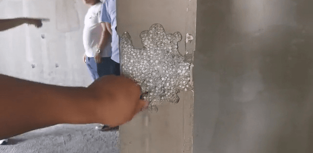 近日,陕西省渭南市蒲城县西丰文苑小区3号楼、5号楼正交房,不少业主却发现,新房隔墙却是用泡沫和着水泥制成的,有业主砸开部分隔墙后,断茬处用手能抠下泡沫颗粒,担忧不安全。