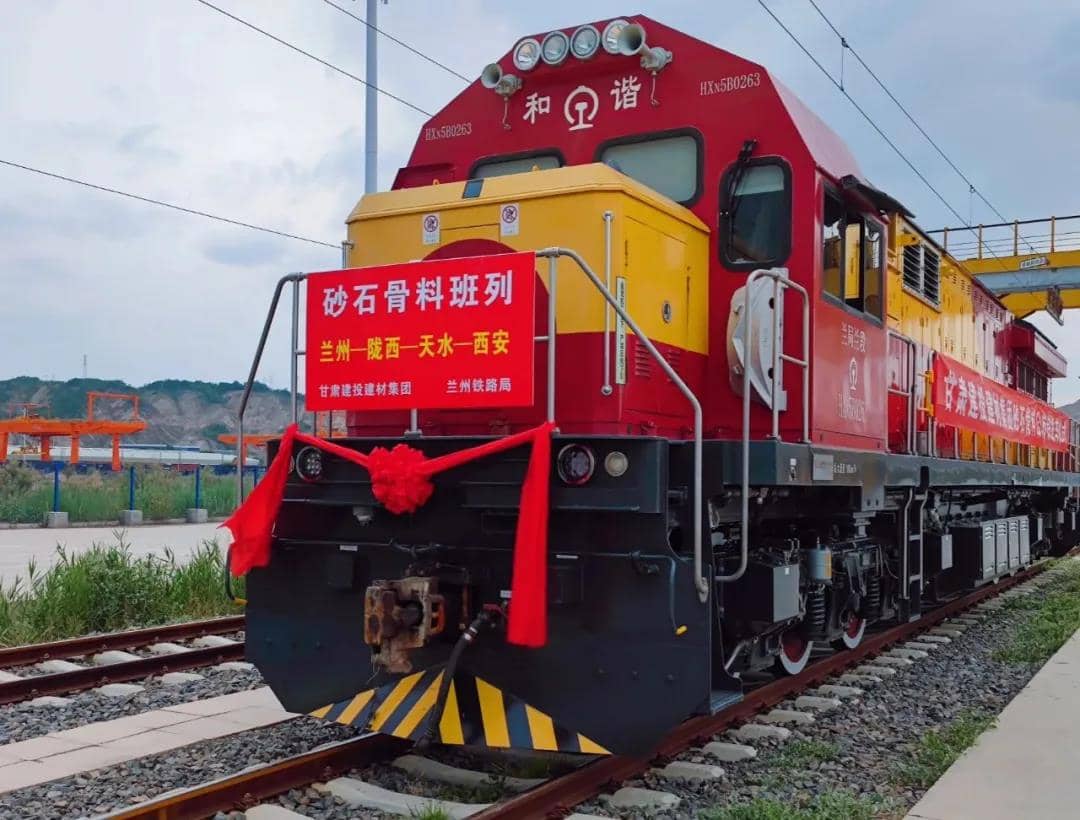 此次砂石骨料“公转铁”集装箱班列是在甘肃省国资委、甘肃建投的大力支持下,由甘肃建投建材集团与兰州铁路局积极协商,达成砂石料运输公转铁合作协议,依托铁路运输方式打造的一条砂石骨料绿色运输新通道。