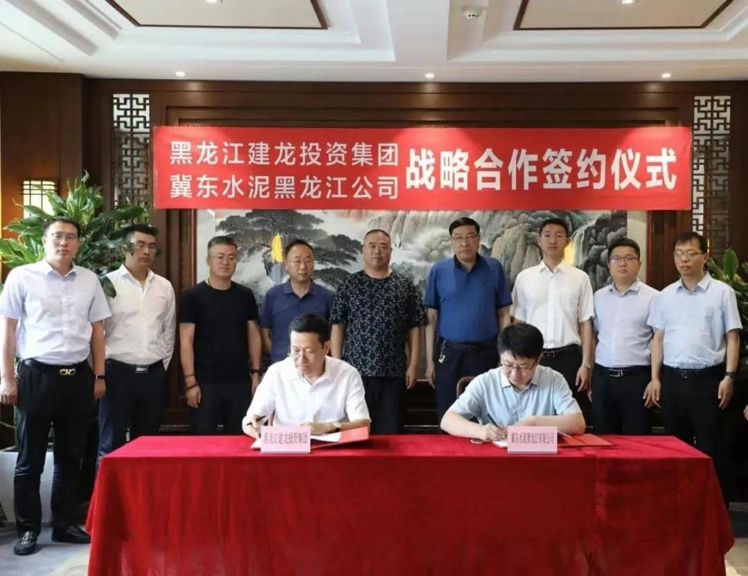 为落实冀东水泥股份与建龙集团在北京签订的《全产业链战略合作协议》精神,2021年6月30日,在吉黑区域党委书记李晓明,北京建龙重工集团副总裁、黑龙江建龙投资集团总经理魏国栋等领导的共同见证下,冀东水泥黑龙江有限公司经理王俊华与建龙投资集团刘凤和副经理签署了战略合作协议。