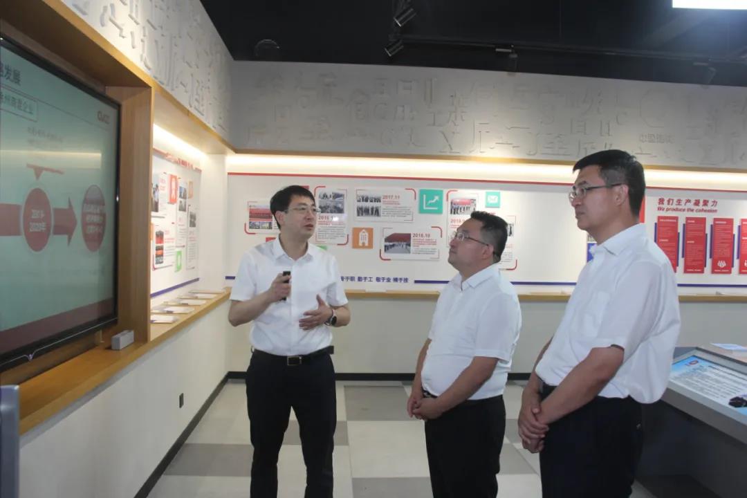 刘洪鹏一行冒着高温天气深入滕州中联创新工作室、废弃石灰石综合利用生产线现场进行调研。公司党委书记、总经理王亚军详细汇报了公司2021年上半年经营业绩完成情况、经营创新发展历程、科技创新、管理创新及绿色低碳循环发展工作开展情况。