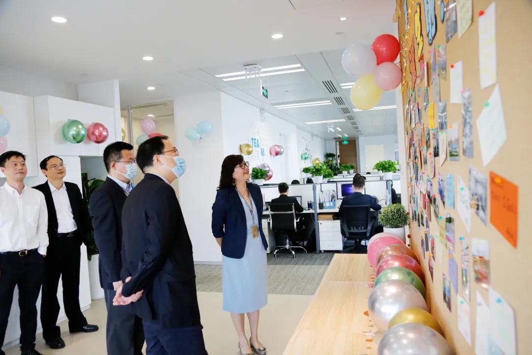 出席仪式的领导和嘉宾们一同参观了员工们精心布置的办公场地,并与员工进行了亲切交谈。