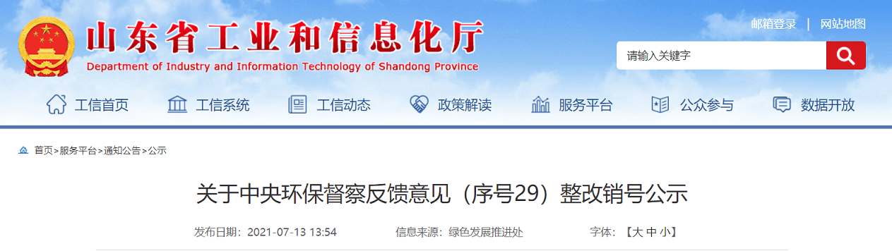 根据中央环保督察要求,中央环保督察反馈意见中第29项由山东省工业和信息化厅负责的整改内容已完成整改,现进行销号公示,公示时间2021年7月13日至19日(共5个工作日)。